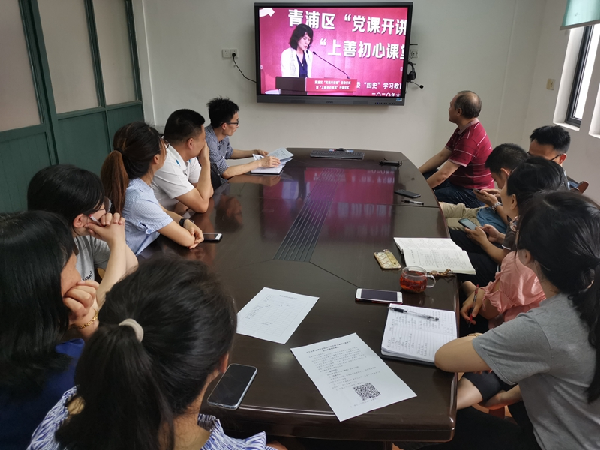 6月11日下午,东湖中学党支部组织党员观看《青浦区“党课开讲啦”启动仪式,暨“上善初心课堂”开讲仪式》的直播活动。