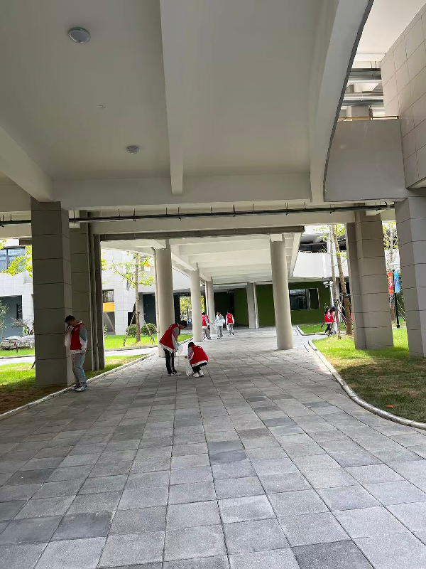 同学们提前做好分工,明确清洁区域与任务。利用中午午休时间,同学们统一着装,手持垃圾袋等工具,分散至校园各处,完成校园清洁活动。教学楼走廊转角的纸屑杂物、绿化带中隐藏的塑料瓶、操场上散落的食品包装袋,都被队员们逐一弯腰拾起;就连公共长椅上遗留的保温杯,也被细心收好并及时送至学校失物招领处。尽管天气微凉,但大家热情高涨,不怕脏、不怕累,相互配合,不放过任何一处卫生死角,用双手为校园“焕新颜”。