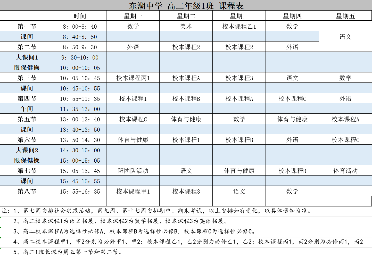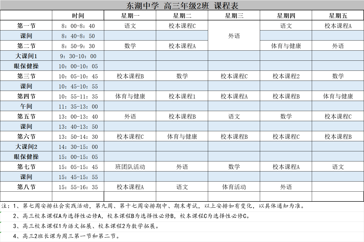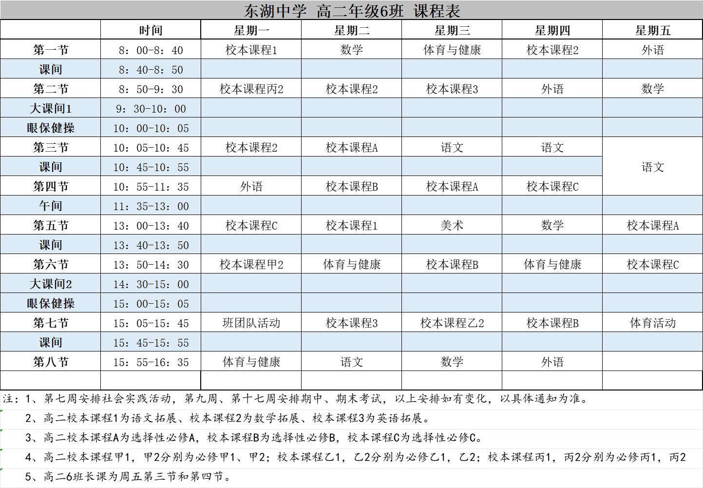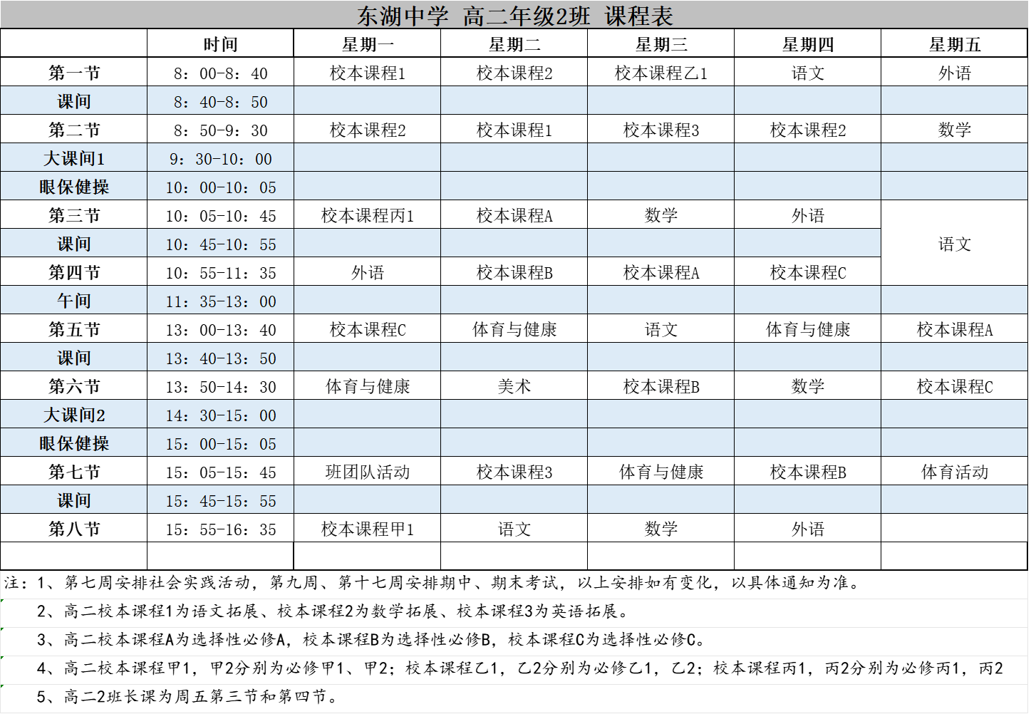 上海市青浦区东湖中学2025学年第二学期课程安排