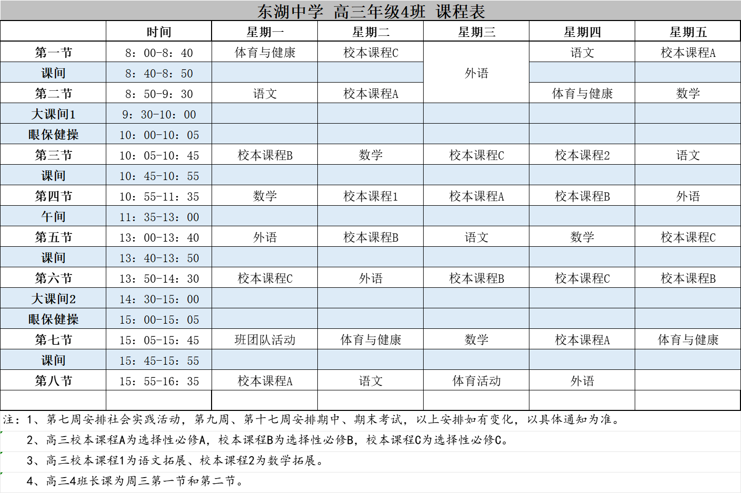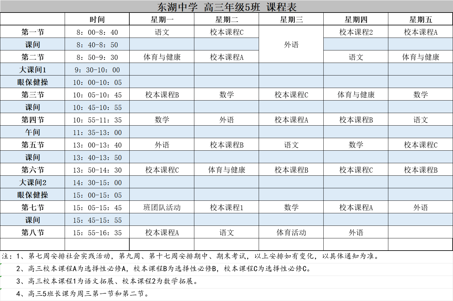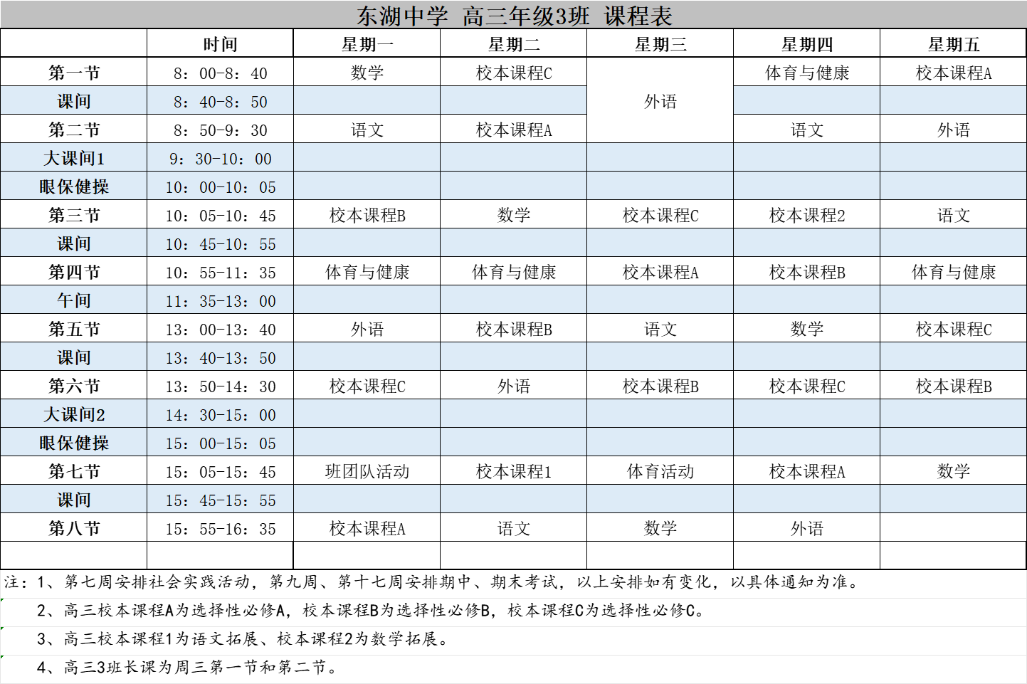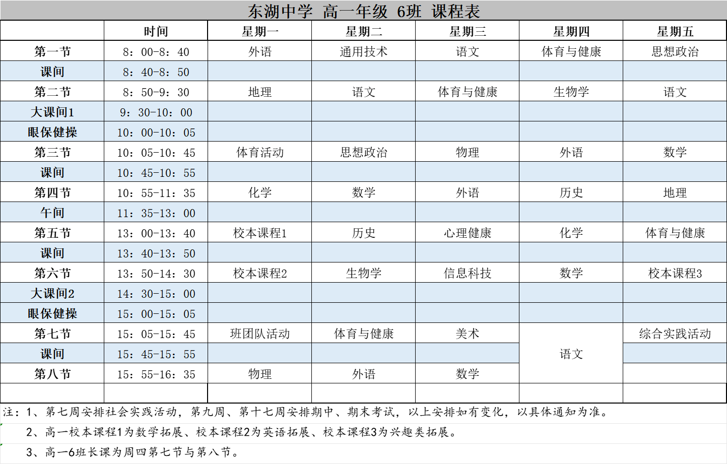 上海市青浦区东湖中学2025学年第二学期课程安排