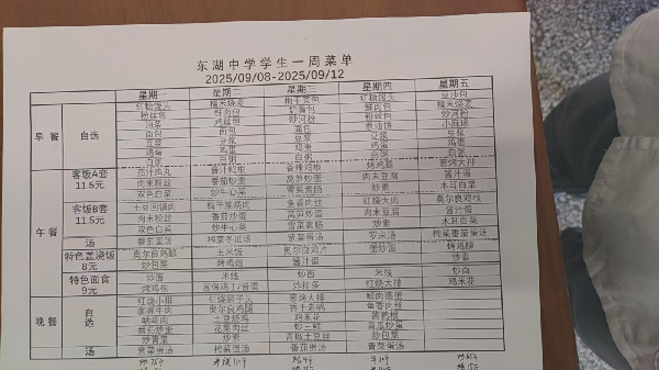 东湖中学学生一周菜单20250908-20250912