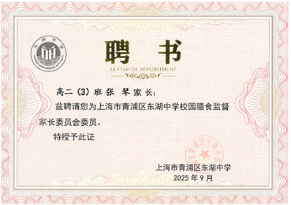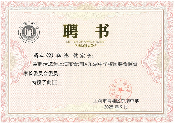 随后,校方向家长委员们颁发聘书,正式聘请他们成为校园膳食监督家长委员会的成员,并倾听家长委员们对食堂工作的意见和建议。
