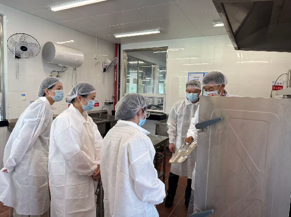 会议结束后,家长委员们前往学校食堂开展实地考察,重点检查“食材储存、后厨操作、餐具消毒”三大区域。在食材储存间,家长代表仔细查看大米、面粉、食用油等物资的生产日期、保质期及储存条件,确认所有食材存放符合食品储存安全标准;在后厨操作区,家长们现场了解食材清洗、切配、烹饪的全流程;在餐具消毒间,家长代表了解了餐具的整套清洁消毒流程,并现场查看了消毒后的餐具质量。家长委员们表示,此次面面俱到的考察让她们直观感受到学校膳食管理的规范性。