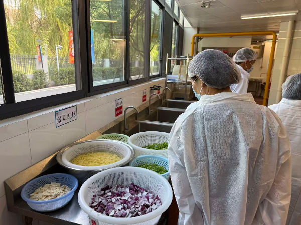 当日中午结束食堂考察,正值学生午餐时间,家长委员们进入食堂就餐区,与学生一同用餐。家长们按需领取当日午餐,亲身体验餐食的口感、温度与分量,并对今日的学生餐食品质表示肯定。