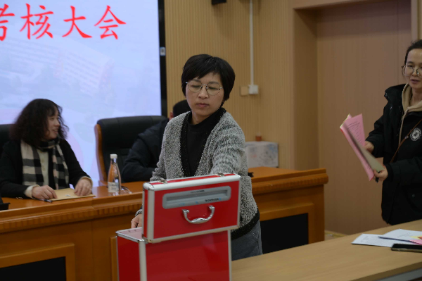 在工作人员的引导下,全体参会代表严格按照测评要求,认真填写《校级干部年度考核民主测评表》,以无记名投票方式完成测评。投票过程规范有序,选票由考核工作小组现场清点、密封,确保测评结果的真实性和严肃性。