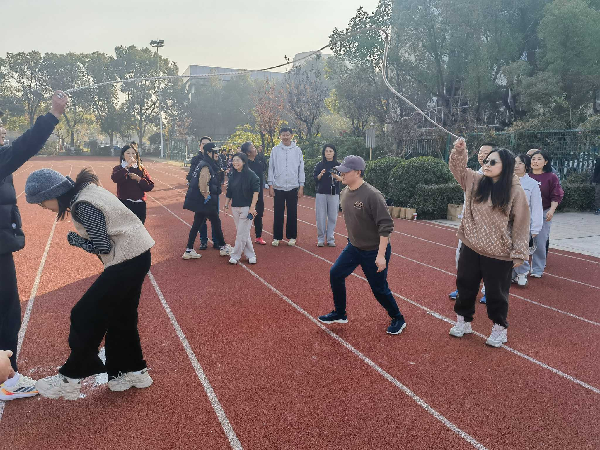本次运动会旨在贯彻全民健身理念,丰富教职工文体生活,设有“双人一心,绳采飞扬”(双人跳短绳)“格盘致胜,一掷定格”(飞盘掷准)“默契穿梭,同心联动”(5米跳长绳)“羽翔云天,稳步如飞”(双人踢毽子)“同心击节,齐足并跃”(多人跳竹竿)五项趣味团体项目。据秩序册安排,我校代表队被分在下午第四组参与比赛。