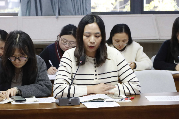 随后,高三各备课组长依次登台交流分享,理科备课组长聚焦解题思路拆解与错题归因,提出“典型错题重做+同类题归纳”的强化策略;文科备课组长则侧重知识体系构建与答题规范指导,分享了“专题梳理+限时训练”的复习模式。