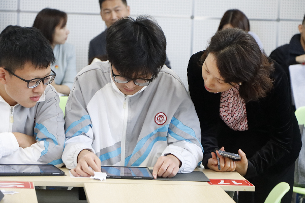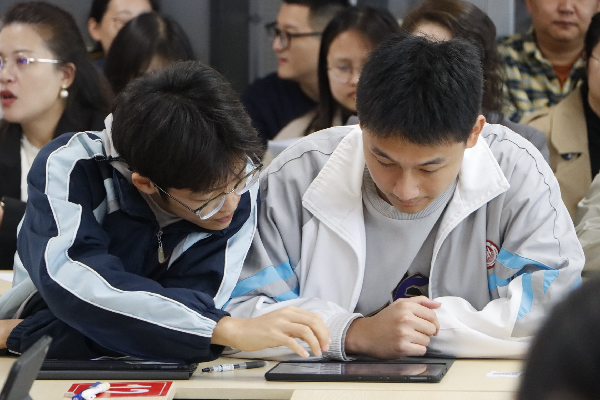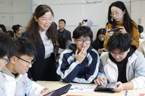 上午为东湖中学专场,东湖中学校长周引根、德育处主任林广波、德育处副主任张增亮陪同全体教育同仁,共同观摩高三生涯教育主题班会《破“镜”寻光,智“绘”未来》。