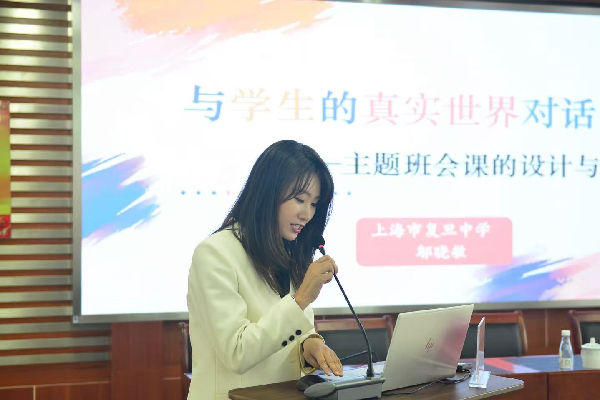 上海市陆丽萍班主任工作室成员邬晓敏、东湖中学德育处主任林广波、青浦一中德育处副主任沈秋艳,分别围绕 “主题班会提质策略”“‘融美’德育实践”“生态德育体系” 分享经验。